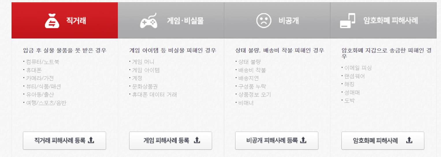 직거래, 게임, 비공개, 피해사례 등을 미리 봐보셔도 막을 수가 있는데요. 일단 앱이 있어서 너무 간단하게 이용이 가능합니다.