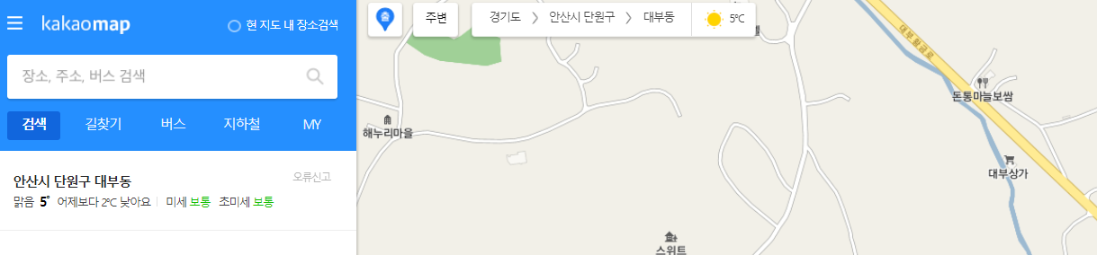다음지도에서 카카오맵이랑 바뀐게 없죠. 거의 비슷합니다. 일단 저는 단원구에 살기는 한데요. 일단 보시면 현재 카카오맵을 볼수가 있는데요.