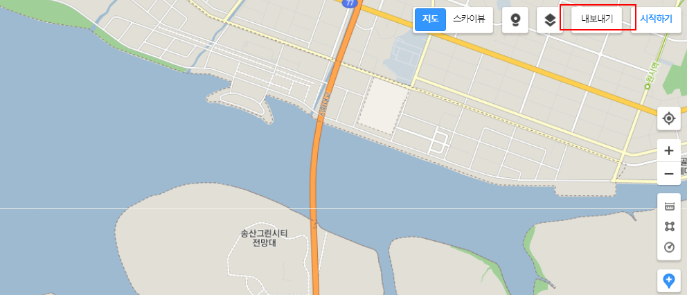 지도/스카이뷰 옆 라인 보면 내보내기 기능이 있는데요. 카카오맵 지도 내보내기를 할수가 있습니다. 특히나 다운로드 가능한데요.