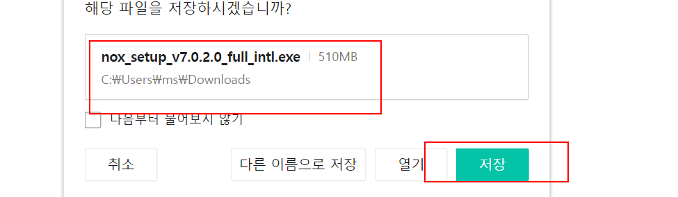 nox_setup_v7버전의 인스톨 버전의 다운로드 할수가 있습니다. 그리고 저장을 하면 됩니다. 여러분은 이런형식으로 녹스 앱플레이어를 받을수가 있습니다.