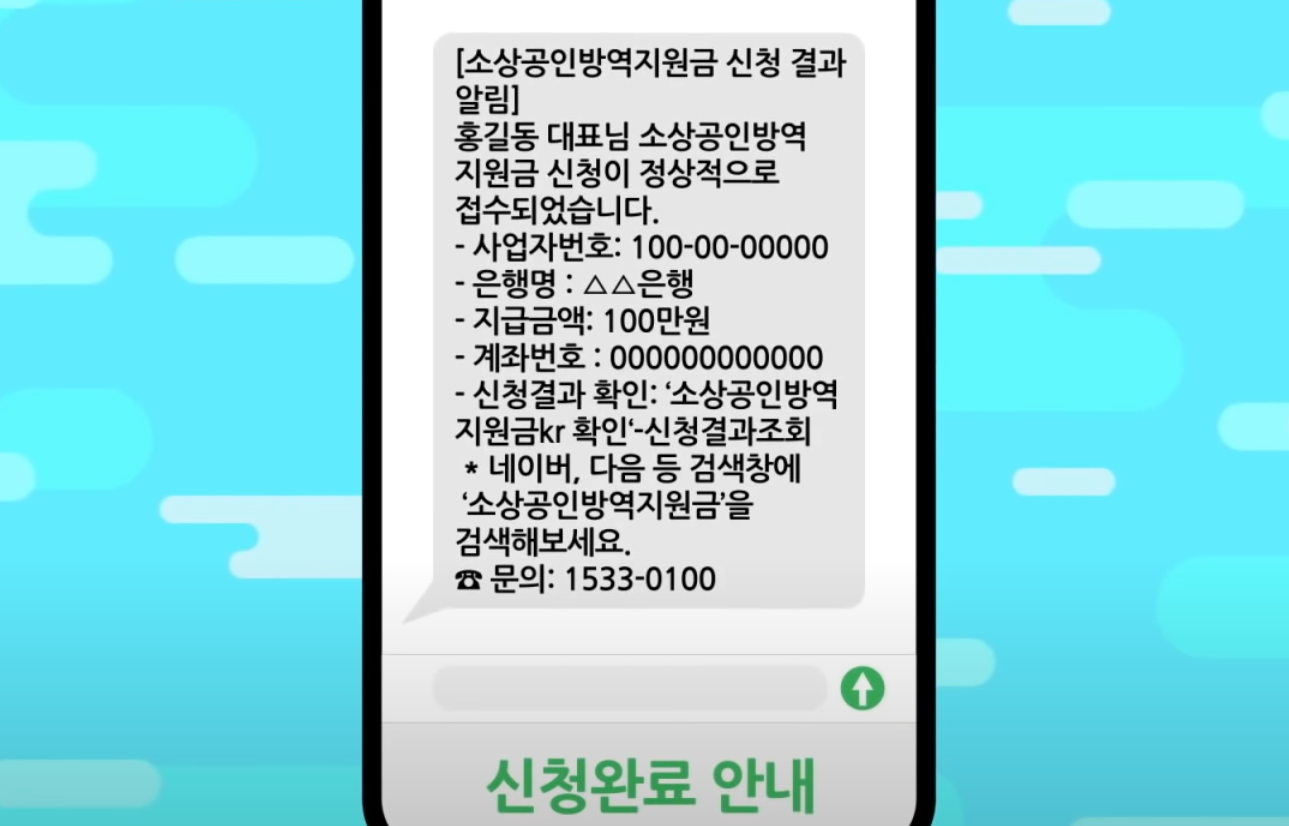 그리고 최종적으로 문자로 확인문자가 오니 참고 하셔서 방역지원금 신청을 완료하시기 바랍니다.
