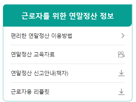 편리한 연말정산 이용방법, 교육자료, 신고안내 책자 및 리플릿 등이 있습니다.