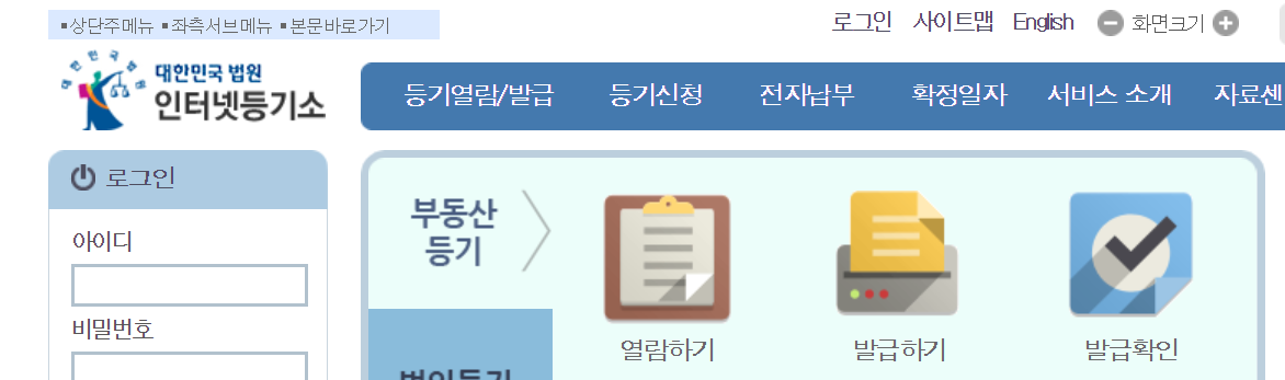 인터넷 등기소 홈페이지 하는방법